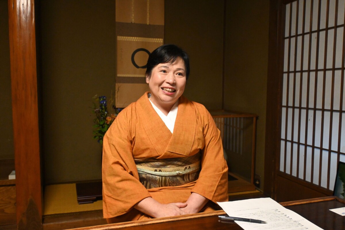 二 代目女将の馬塲 由紀子(ばば ゆきこ)さんは、もともと飲食業とは無縁の世界から歩み始めました。子どもの頃から体を動かすのが好きで、高校ではソフトテニス部に所属。顧問の先生の影響で日本体育大学へ進んだという体育会系の馬塲さんですが、現在の着物姿からは意外なギャップでした。