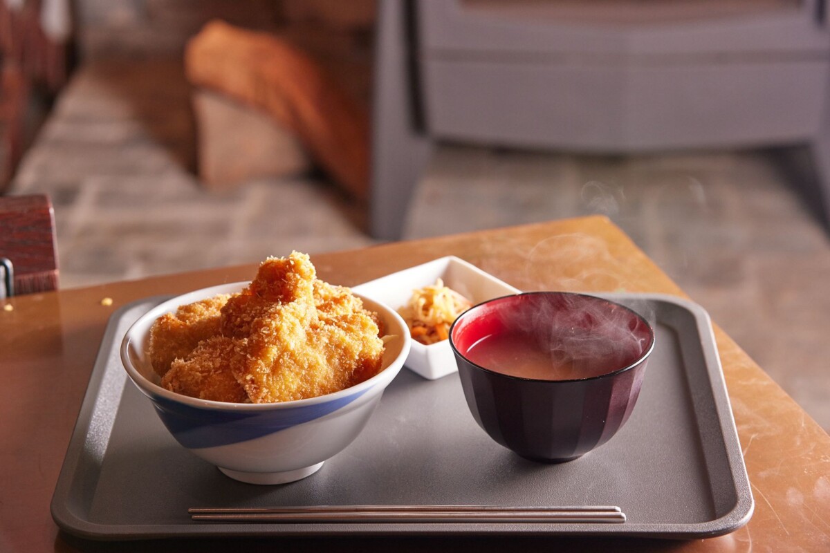 メニューは、「定食」「丼」「カレー」の3種類に絞られています。現在の価格は定食900円、丼800円、カレー600円。