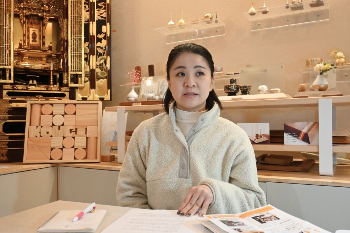 「結婚したばかりの頃、『家業を3年だけ手伝ってくれないか』と言われました。私は『仏壇って何ですか?』という状態からのスタートで、おばあちゃんの家でチーンという音を聞いたことはありますが、お寺や宗派もちんぷんかんぷん(笑)。結婚して家業に入り、最初は何ができるのかは分かりませんでした」