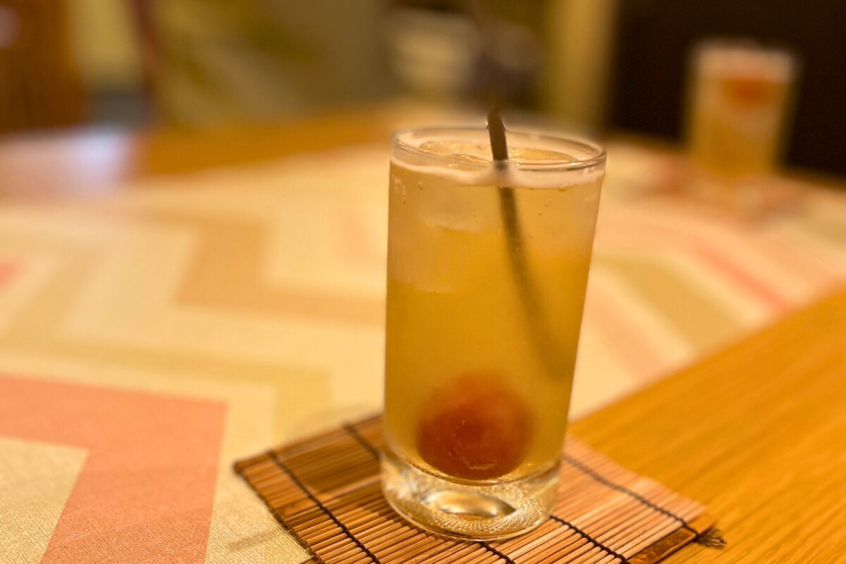 取材中、米子さんが厨房に入って行き、「今日は暑いから、一杯どうぞ」と、手作りの梅ジュースを出してくれました。「いただきま〜す」とごっつぉクルー皆でありがたくいただきましたが……「この梅ジュース、おいしい!!」と大盛り上がり!
