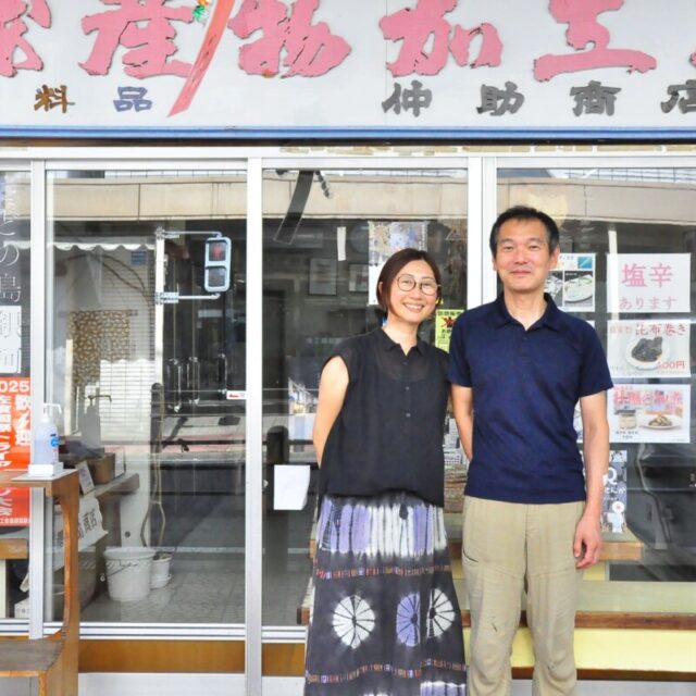 4代目の中澤裕史さん・加奈さんが中心となって切り盛りする、佐渡・両津にある「中澤仲助商店」。創業から100年を過ぎた今もなお、佐渡の海産物専門店として地域で親しまれています。